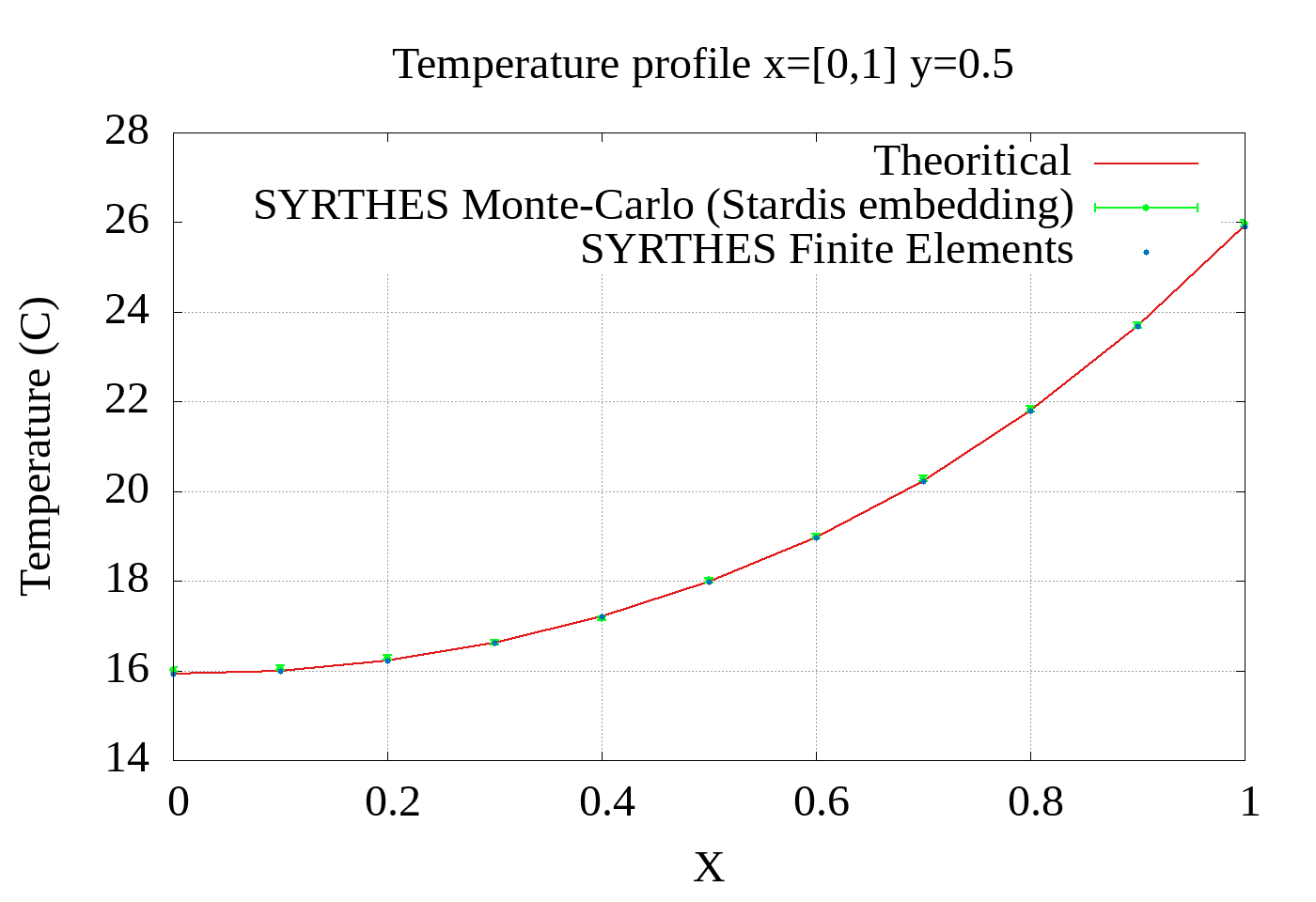 Finally, we present a validation test case of SYRTHES, the thermal code developed by Électricité de France, which provides both a finite element solver and a Monte Carlo solver powered by Stardis.
